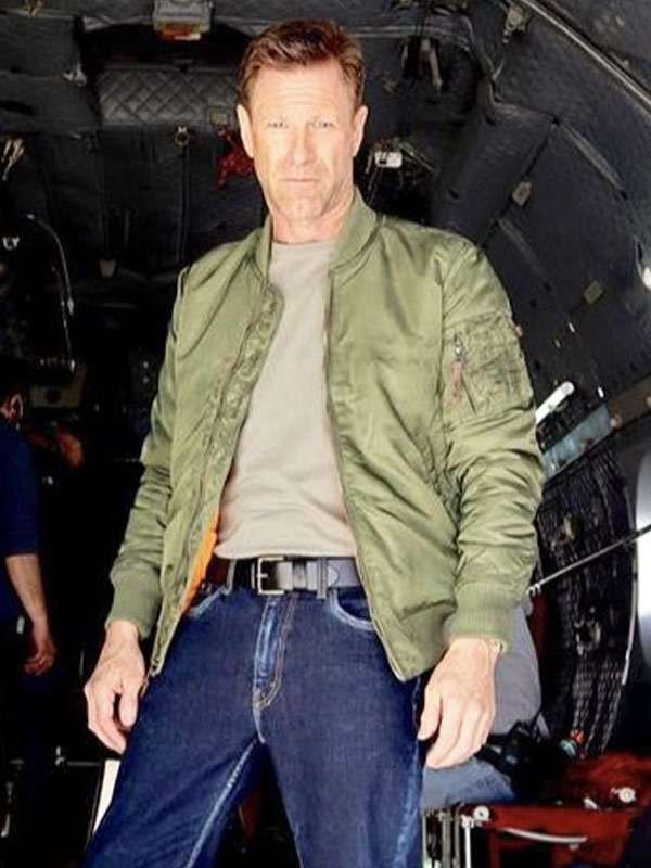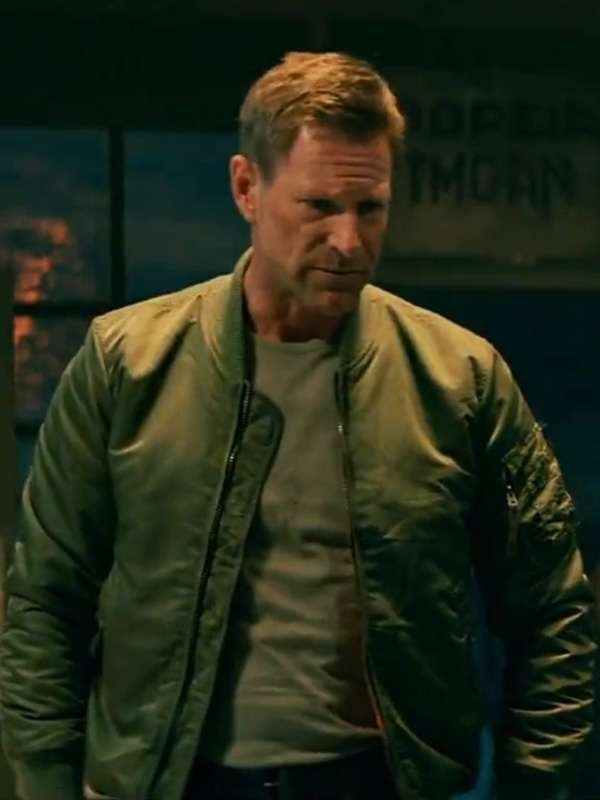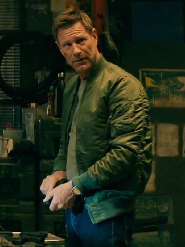 The Bricklayer 2024 Aaron Eckhart Green Bomber Jacket