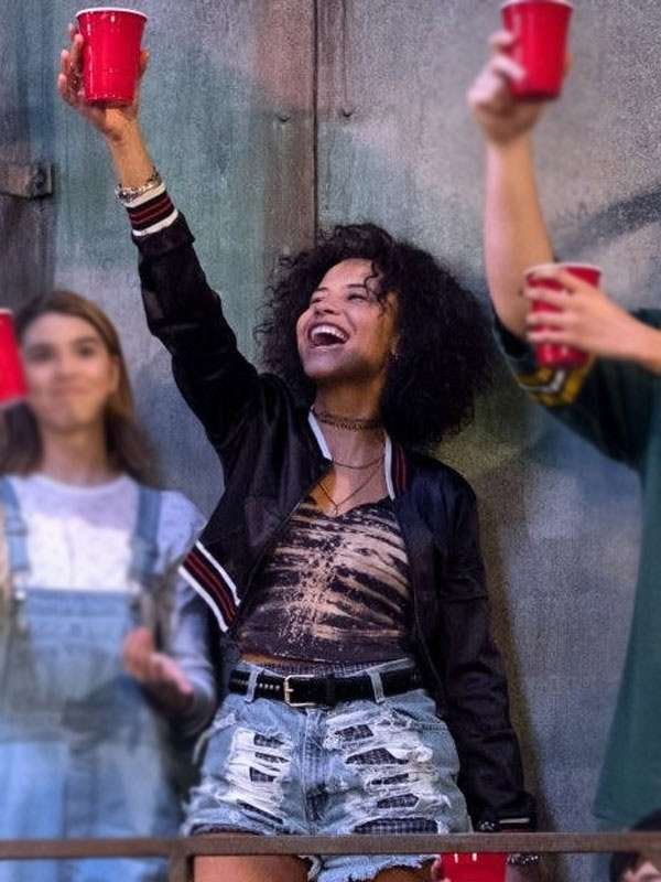 Home » Shop » TV Series Outfits » Ashley Aufderheide That ’90s Show Satin Varsity Jacket