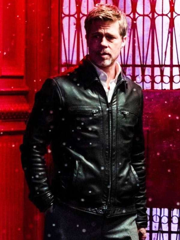 Wolves Movie 2024 Brad Pitt Black Leather Jacket