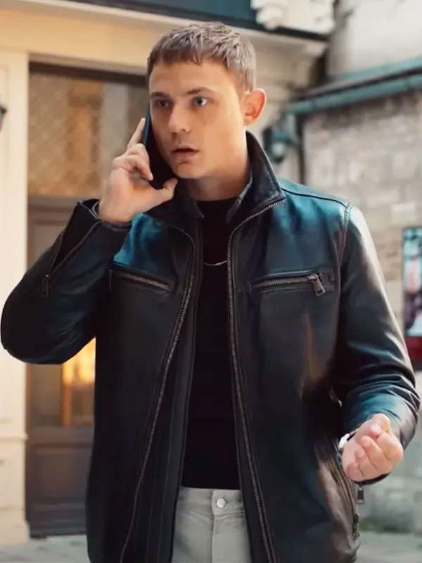 Dennis Mojen Movie Sixty Minutes 2024 Paul Lehmann Black Leather Jacket