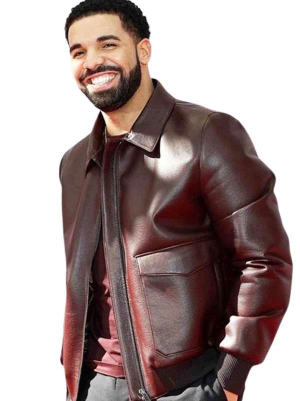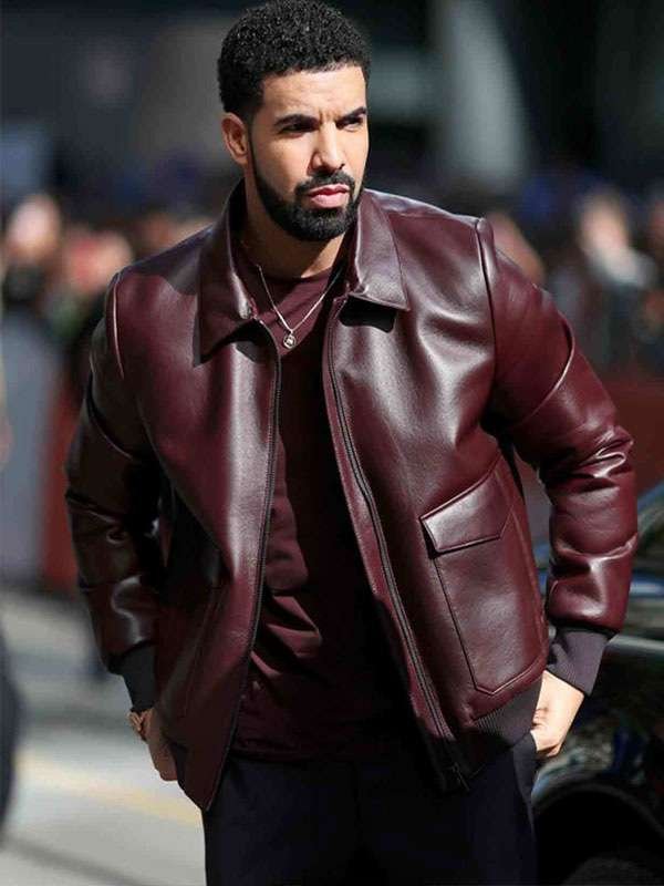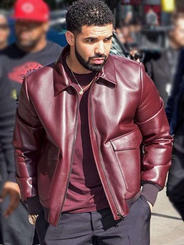 Drake Toronto Film Festival Maroon Bomber Leather Jacket