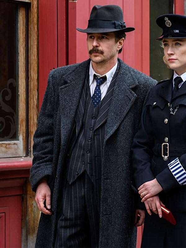 Inspector Stoppard See How They Run 2022 Sam Rockwell Black Wool Coat