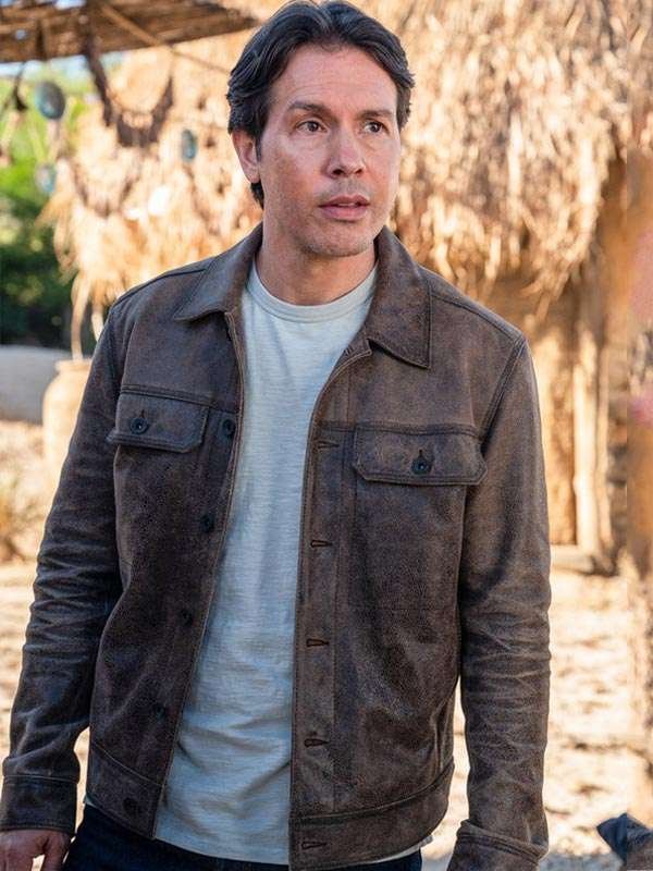 Sam Velez TV Series La Brea 2024 Jon Seda Brown Leather Jacket