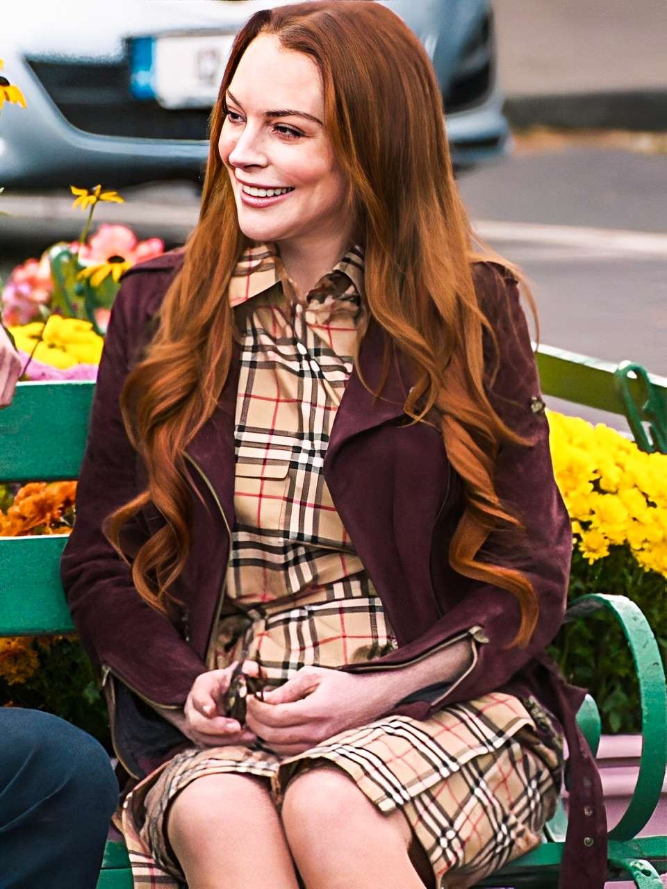 Irish Wish 2024 Lindsay Lohan Suede Leather Jacket