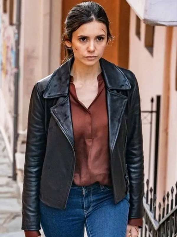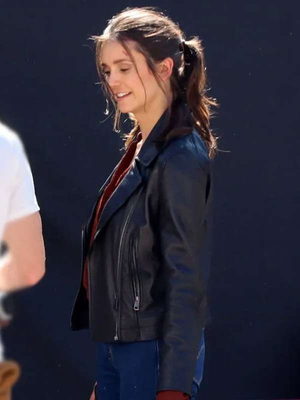 The Bricklayer 2024 Nina Dobrev Black Leather Jacket