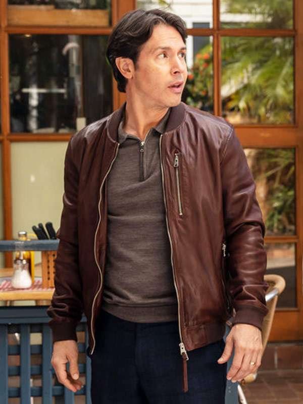 Sam Velez TV Series La Brea 2024 Jon Seda Brown Bomber Leather Jacket