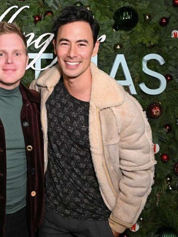 Tad Fairchild Falling for Christmas Movie Beige Leather Jacket